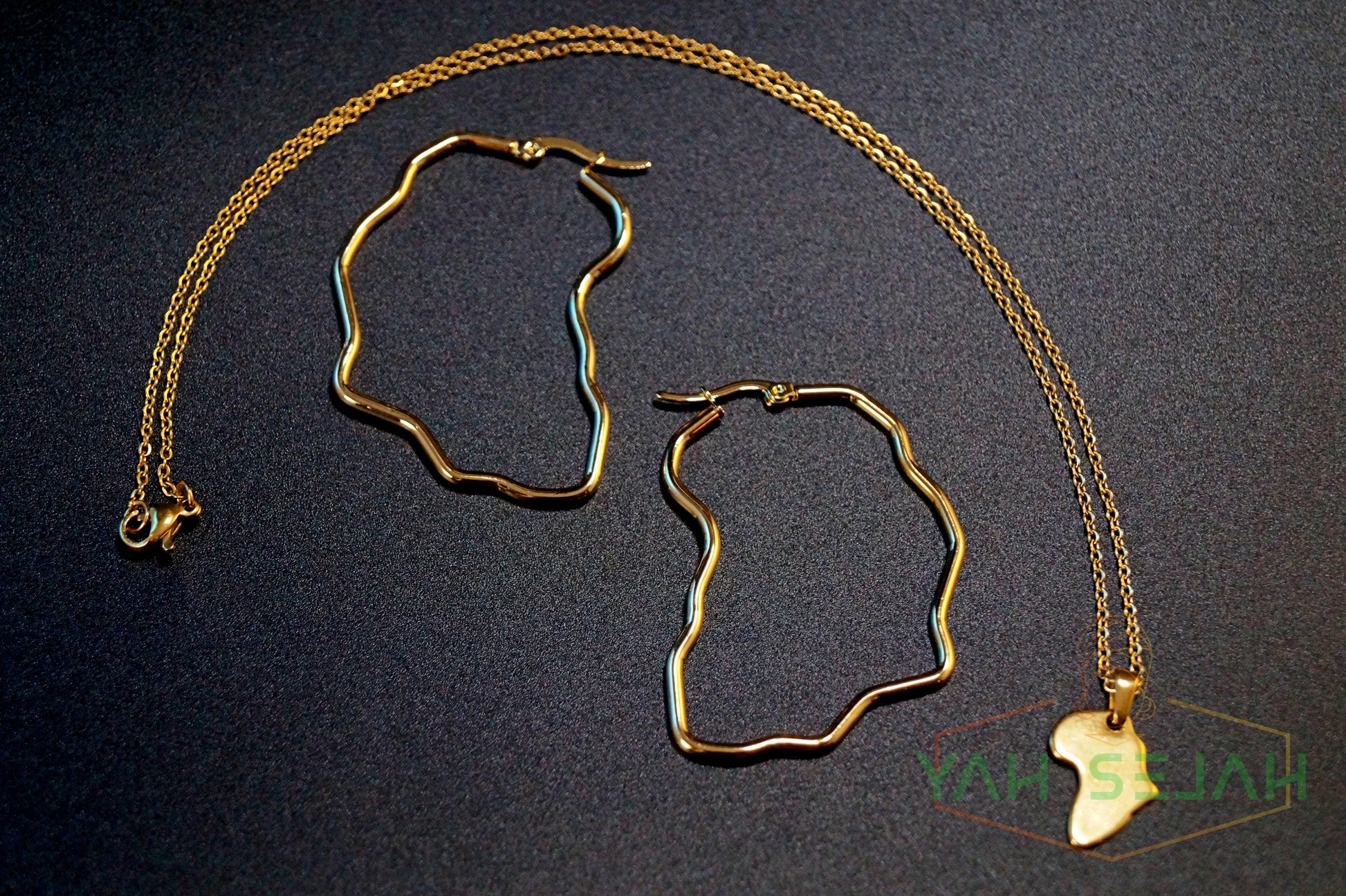Die Afro Kombo bestehen aus unseren neuen Wire me Africa Ohrringe und unserer Minimal Afrika Halskette in 14k Gold.