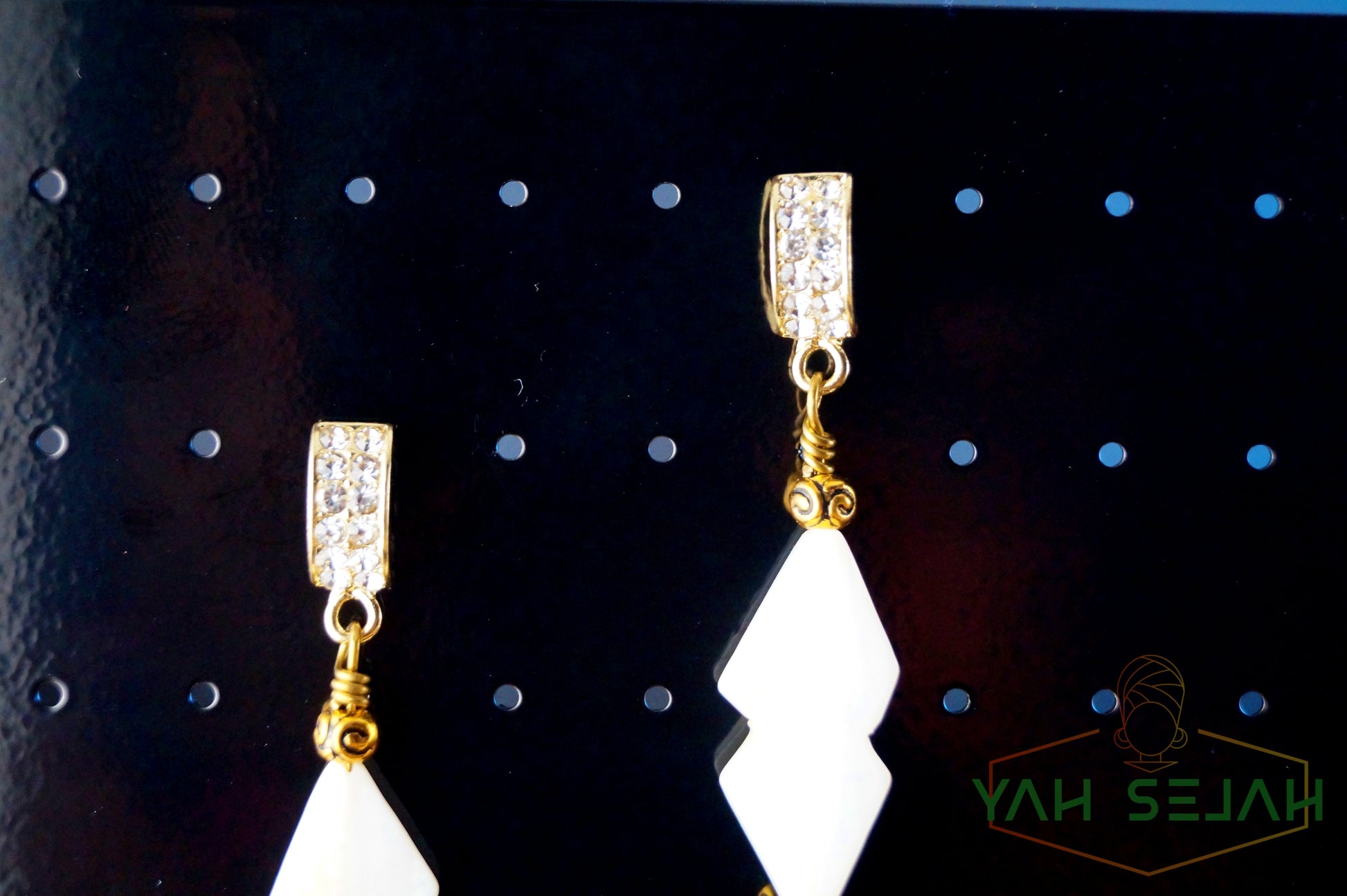 Der Ohrring besteht aus Eisen,Aluminium,Perlmutt,Zirkonen