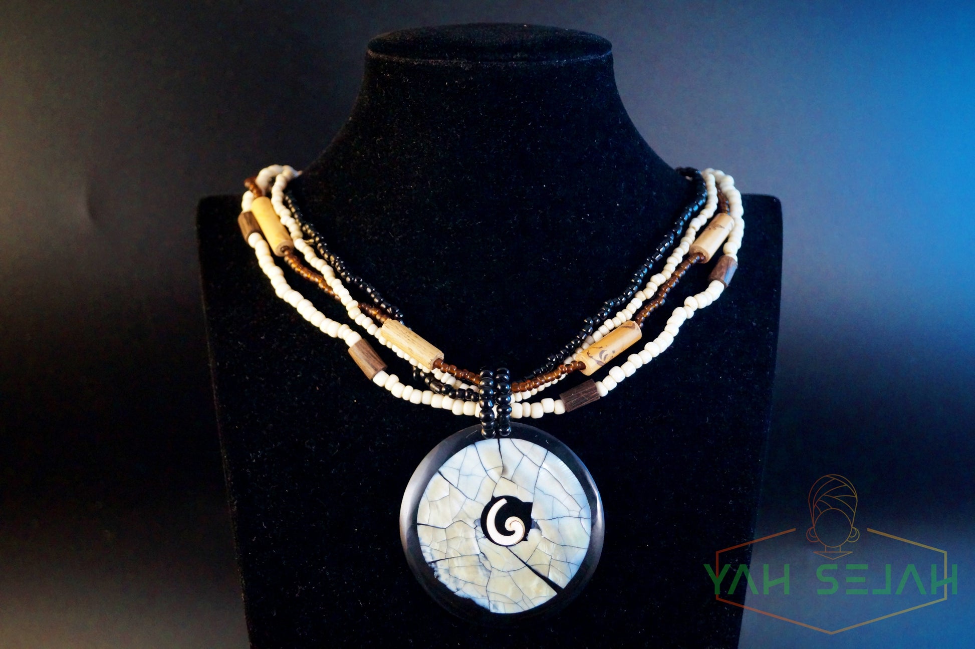 Diese Wunderschöne Kette ist Absoluter Hingucker und wurde aus Vielen schönen Materialien wie Glasperlen Kokosnuss Holz,Bambus und Perlmutt hergestellt.