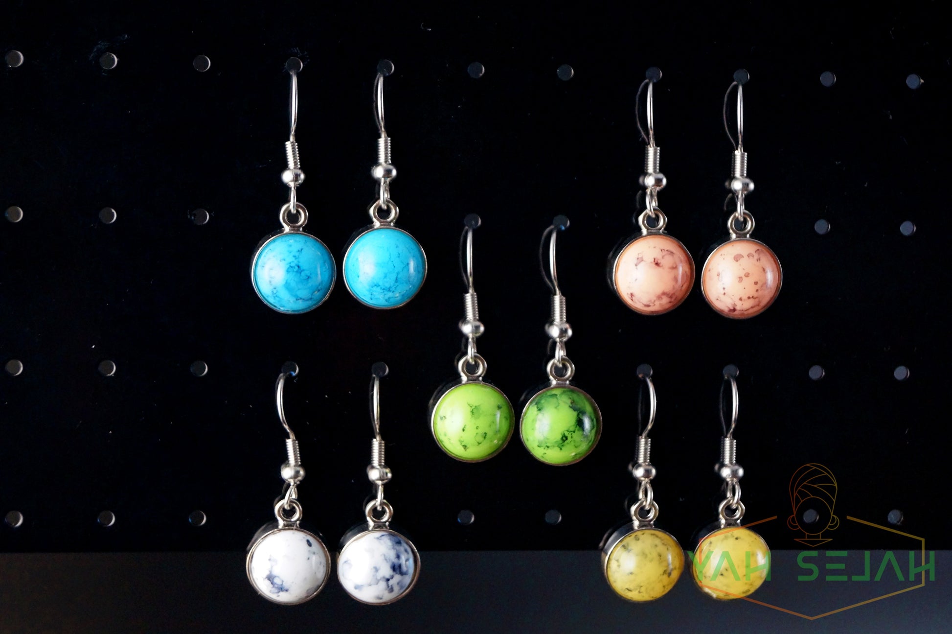 Diese Ohrringe sind aus Edelstahl und Kunststoff