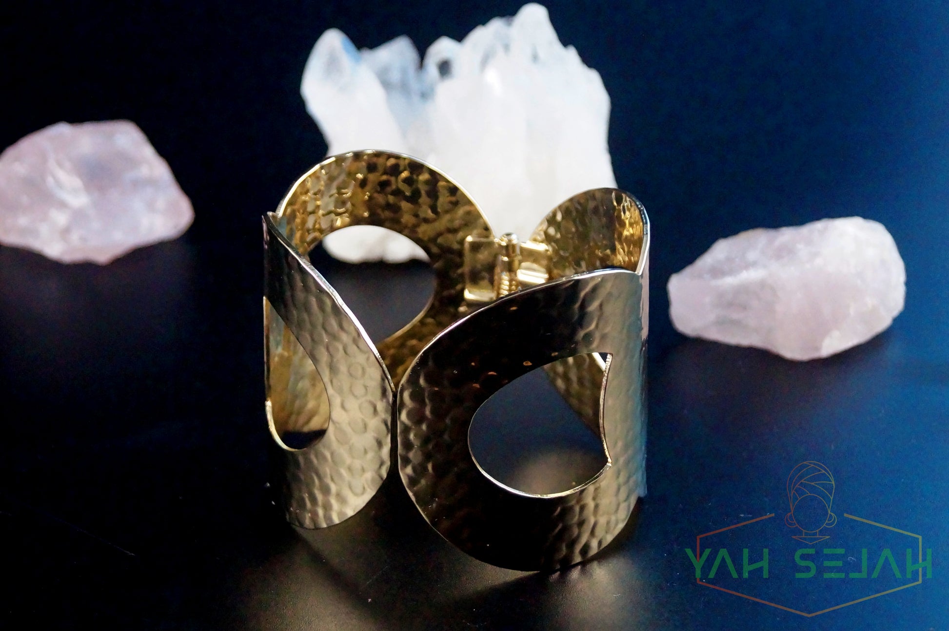 Klapp Armreif besteht aus Vergoldetem Metall und ist Spiegelpoliert und gemustert