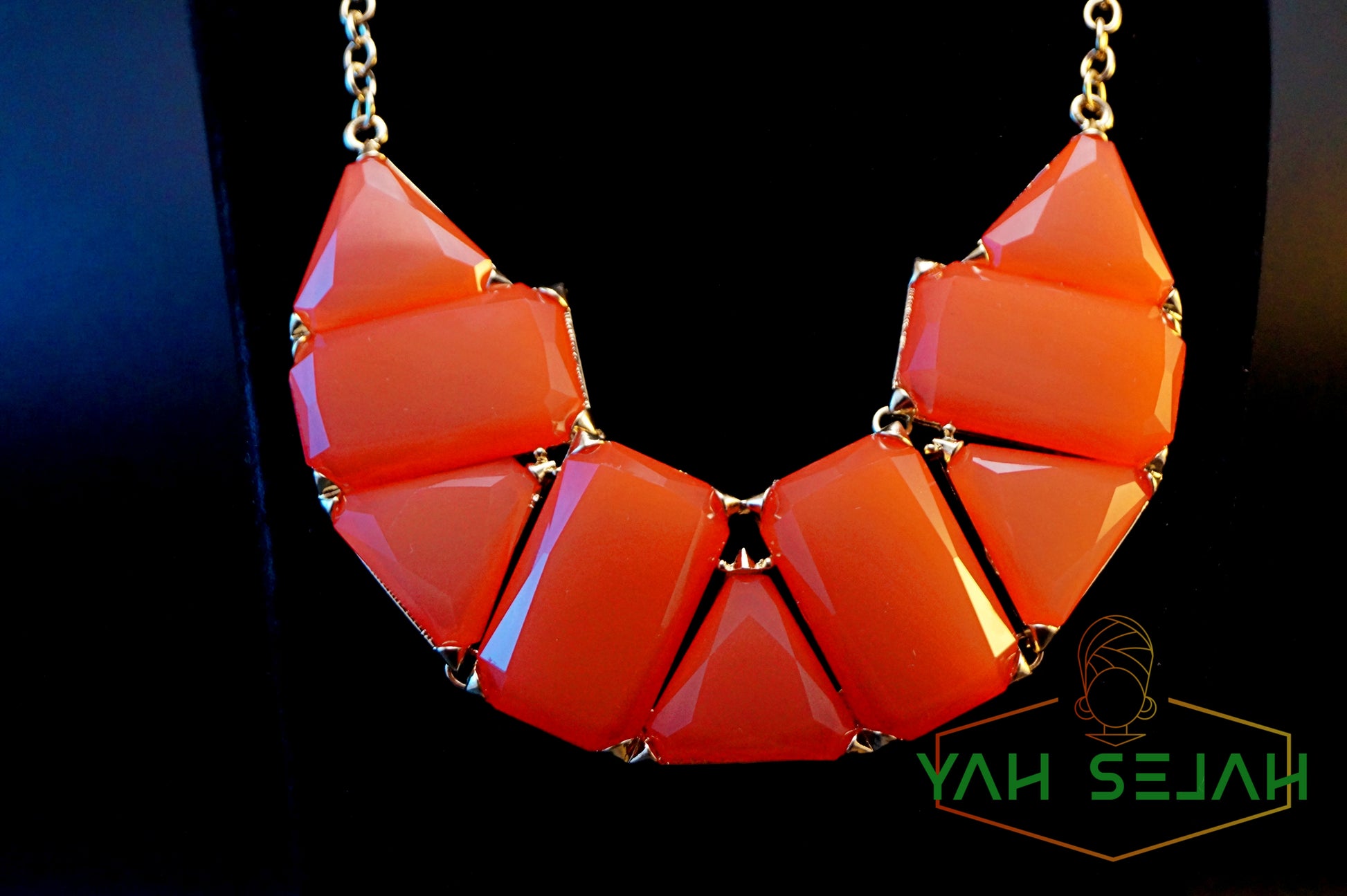 Dieses Farbenfrohe Collier gibt dir etwas Sommerflair um den Hals,dank seiner Korallen Farbe.