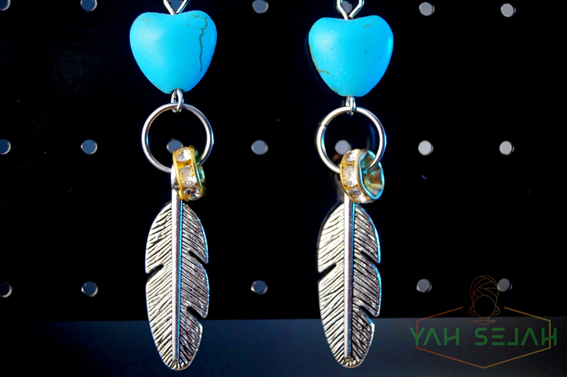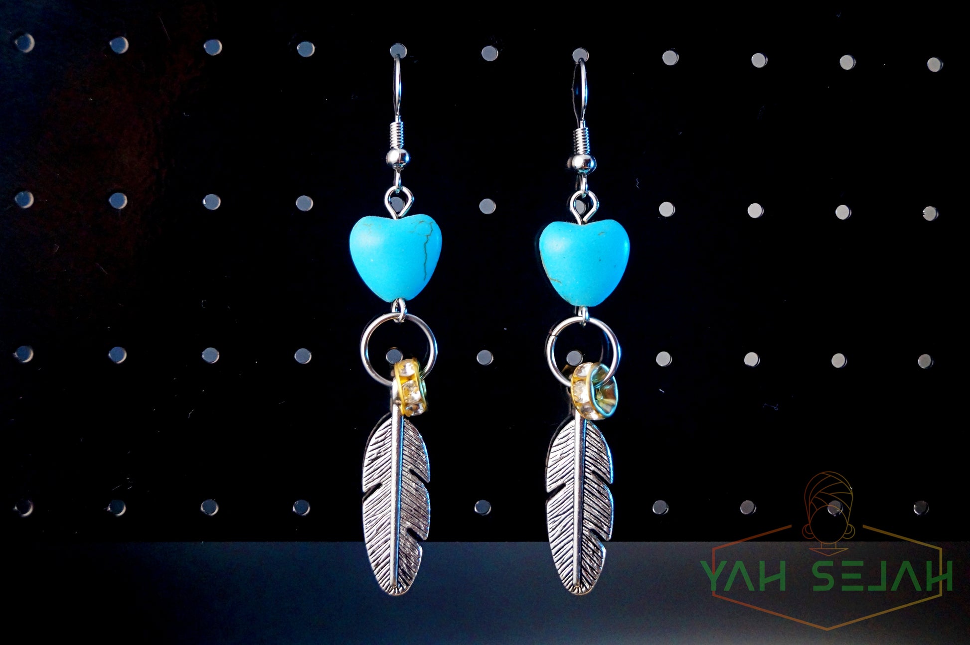 Diese Süßen Ohrringe wurden mit einem Herzen aus Howlith und einer Silbernen Feder aus Eisen Gefertigt.