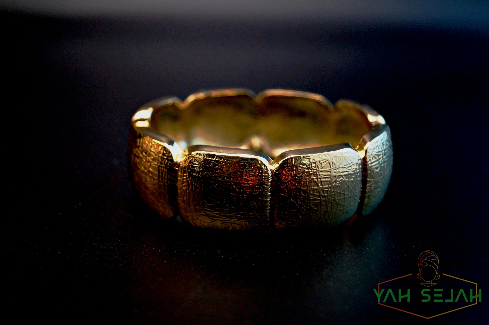 Armreif besteht aus vergoldetem Stahl und lässt sich wie eine Klammer öffnen