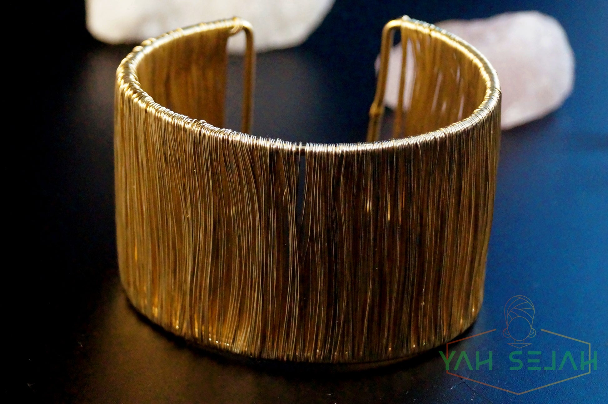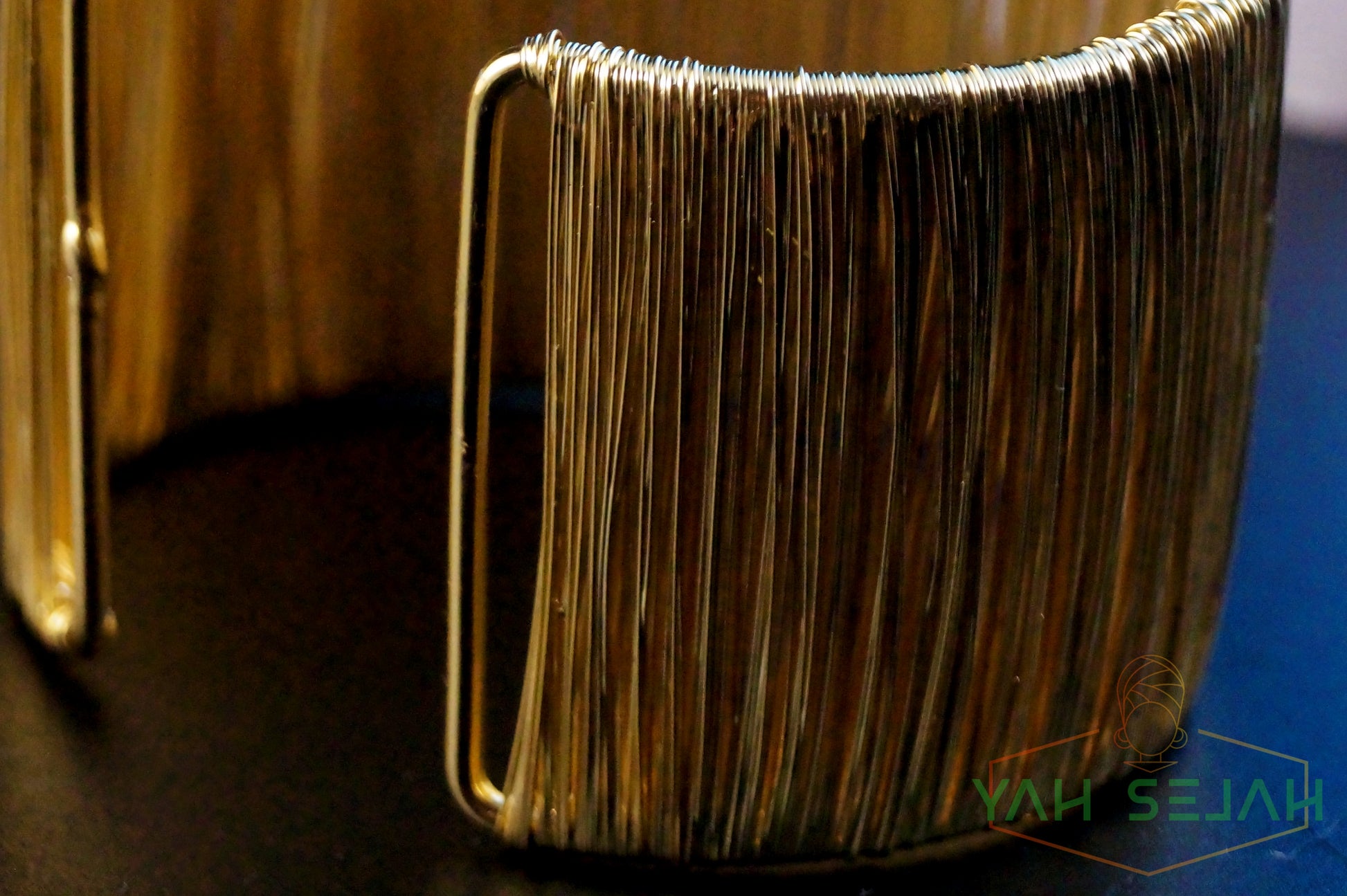 Der Armreif Besteht aus Messing und ist Goldfarben.