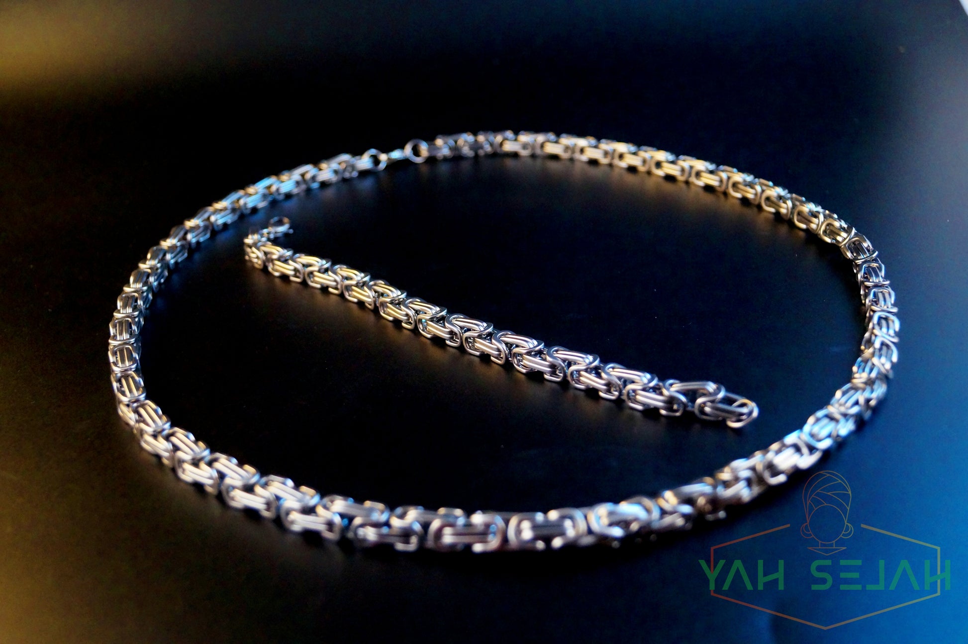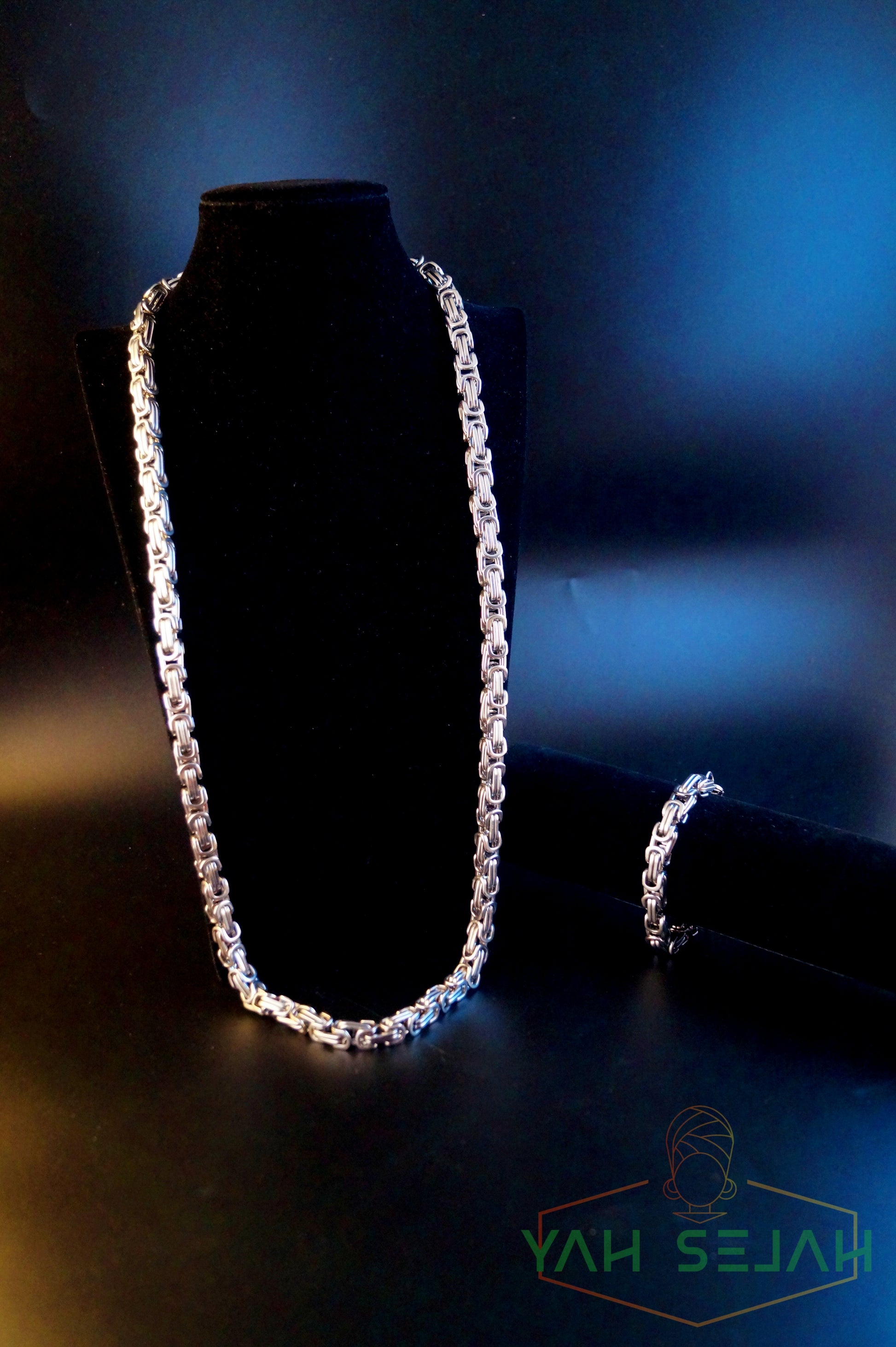 Wunderschön und sehr Massiv.Das besondere ist das man selten eine Königskette Mit 80cm länge und 8,5mm breite findet,vor allem nicht zu so einem Günstigen Preis,und das auch noch im Set!