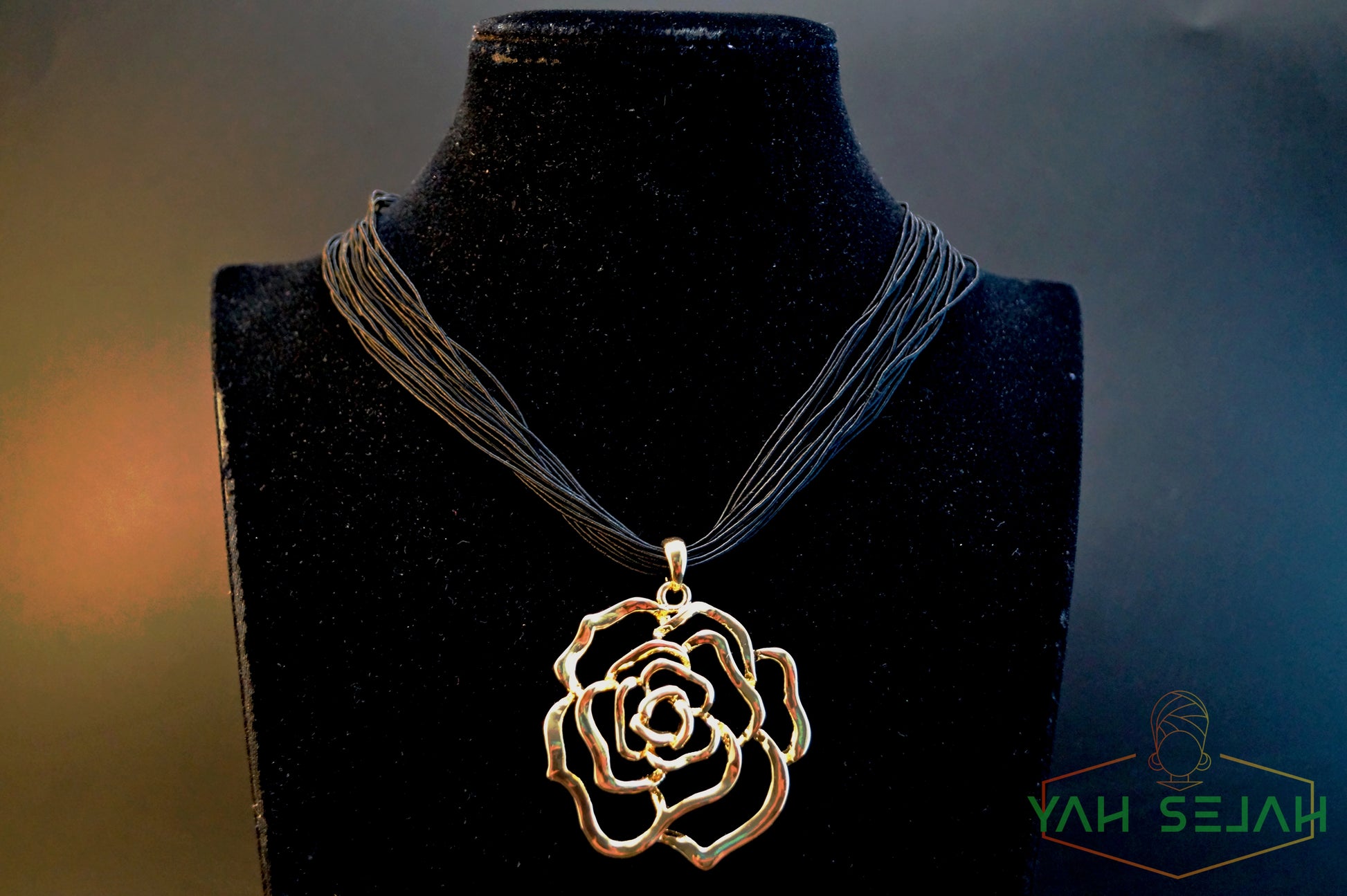 Kette besteht aus Nylonschnüren und der Anhänger und Verschluss ist aus Vergoldetem Stahl
