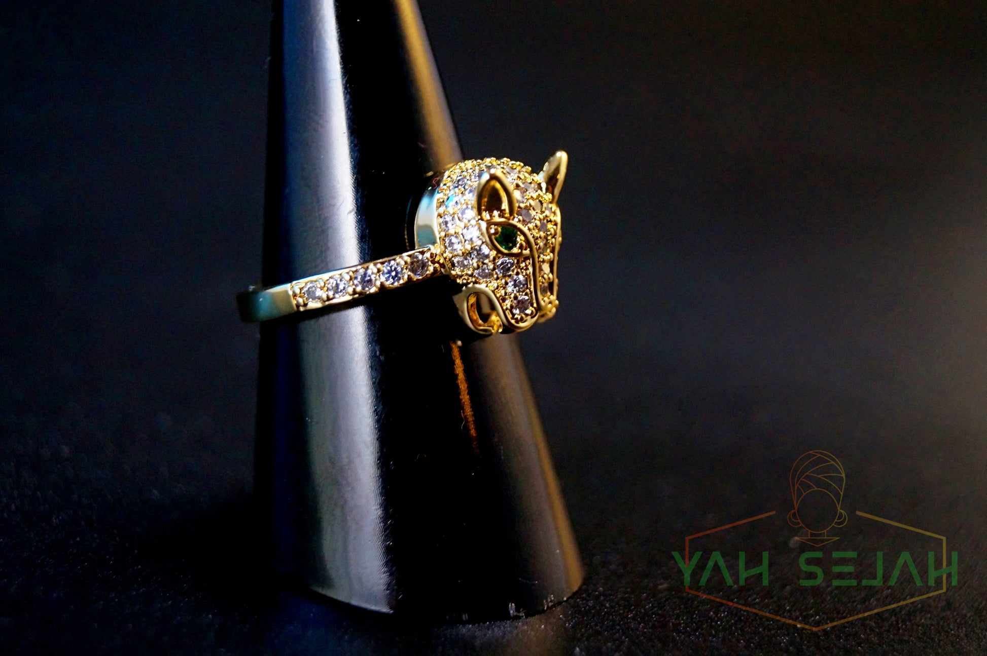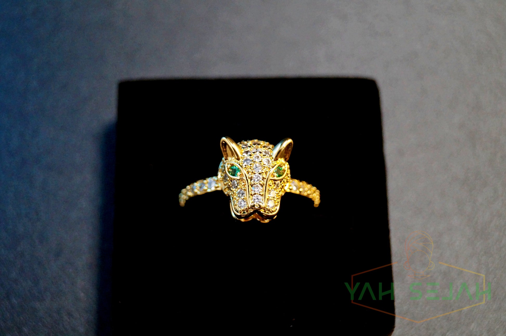 Dieser wunderschöne Ring ist einfach hart in Worte zu fassen Fam!! Dieser wunderbar gearbeitete Leopardenkopf, die wunderschön funkelnden klaren Zirkonia die den Ganzen Kopf Verzieren und dann diese Smaragd grünen Zirkonia als Augen, kommen einfach super zu Geltung dank der 18k Vergoldung.