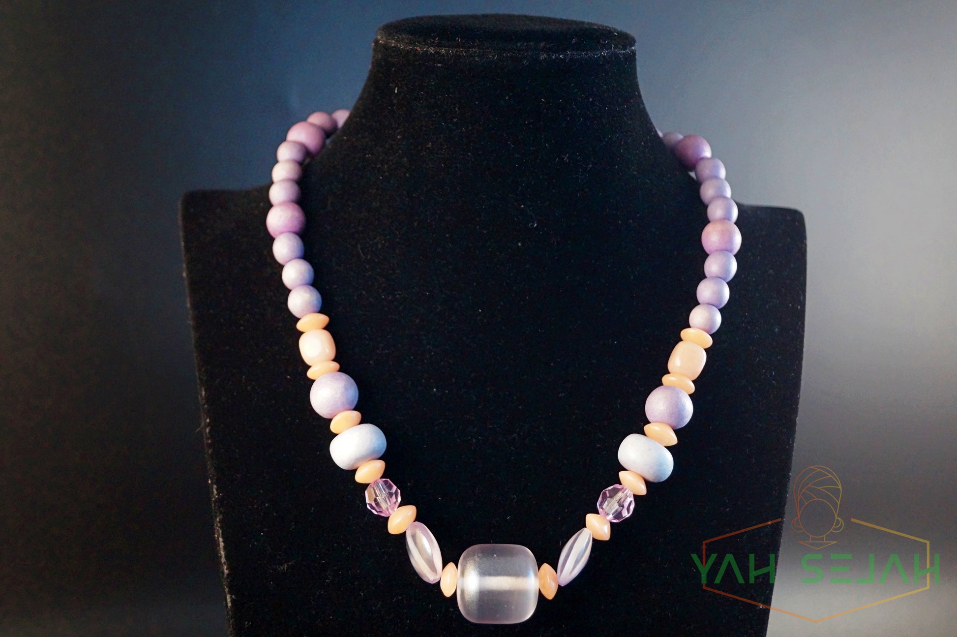Diese Kette besteht aus Holzperlen,Acrylperlen und Glasperlen