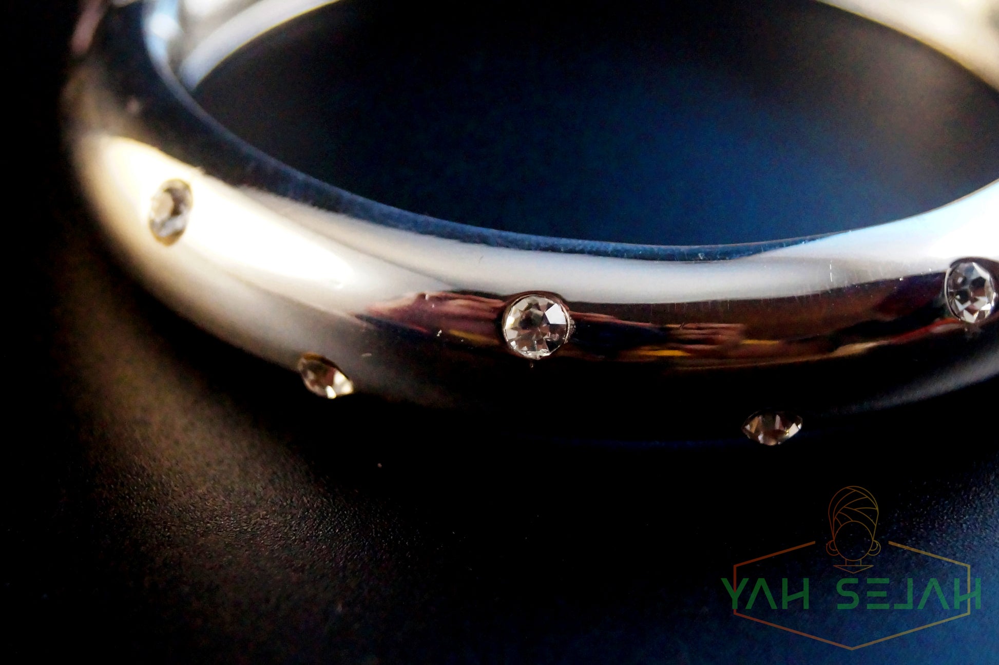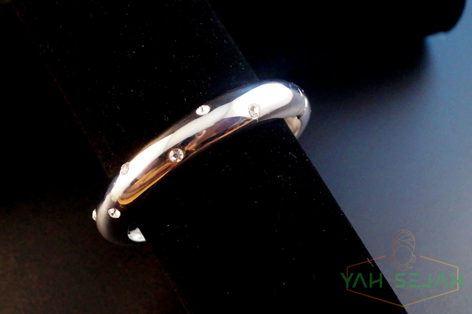 Dieser Armreif ist aus Hochpoliertem Edelstahl und wurde mit Zirkonen verziert.