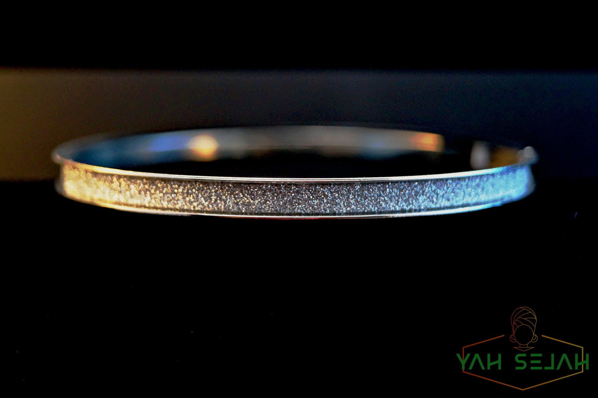 Armreif besteht aus Stahl und hat ein Glitzer Design