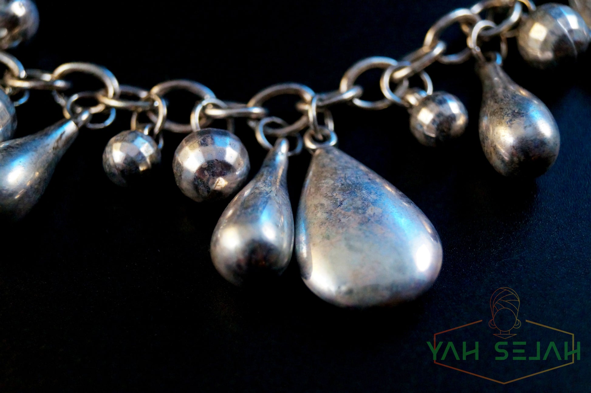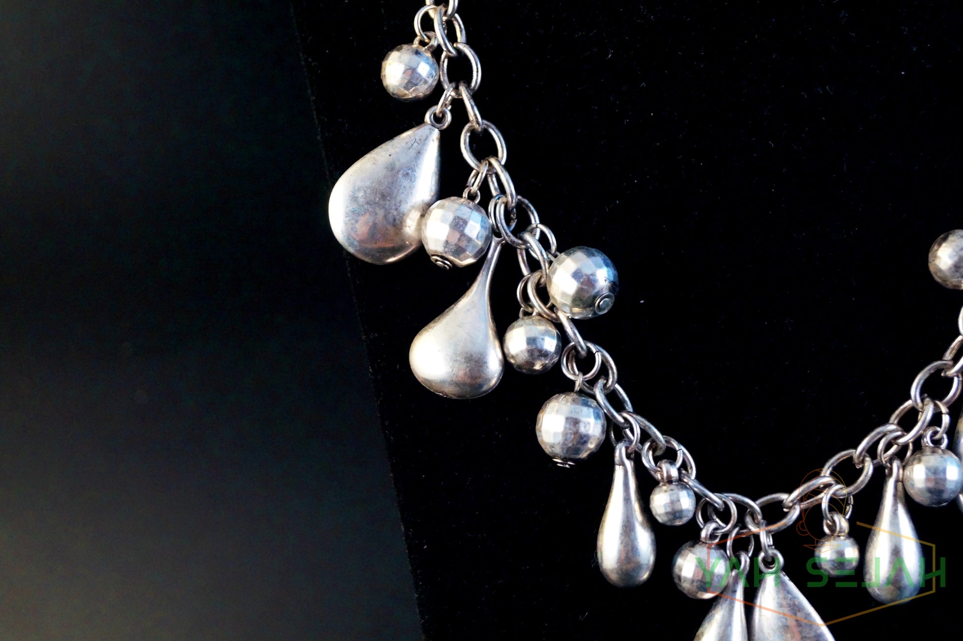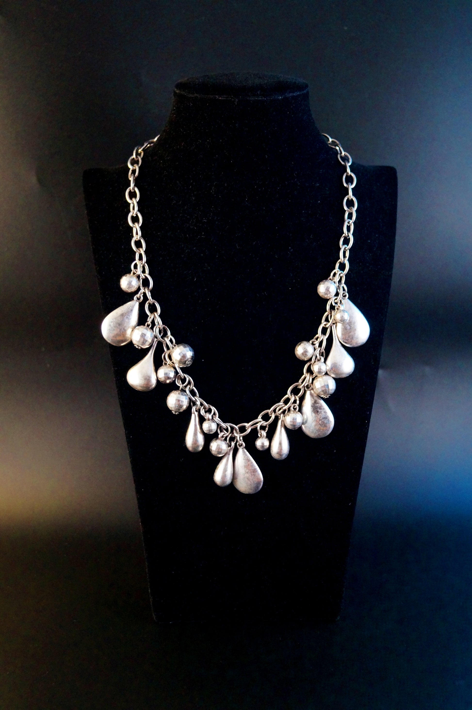 Just look,diese Tropfenförmigen Silberfarbenen Elemente und diese Süßen kugeln sind echt wunderschön! Die ganze Kette hat einen alt Silber look,was diese Kette noch aufregender macht.