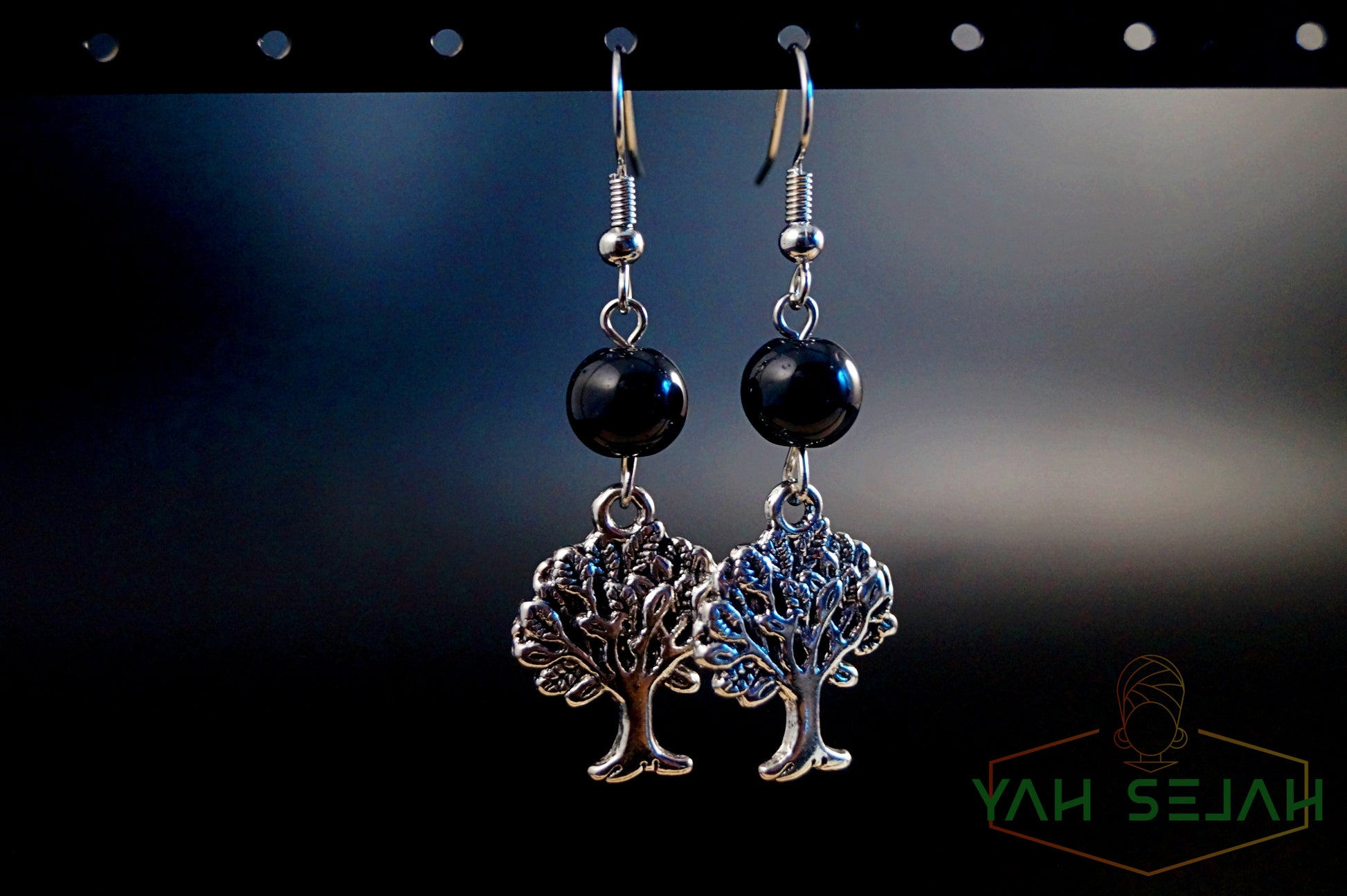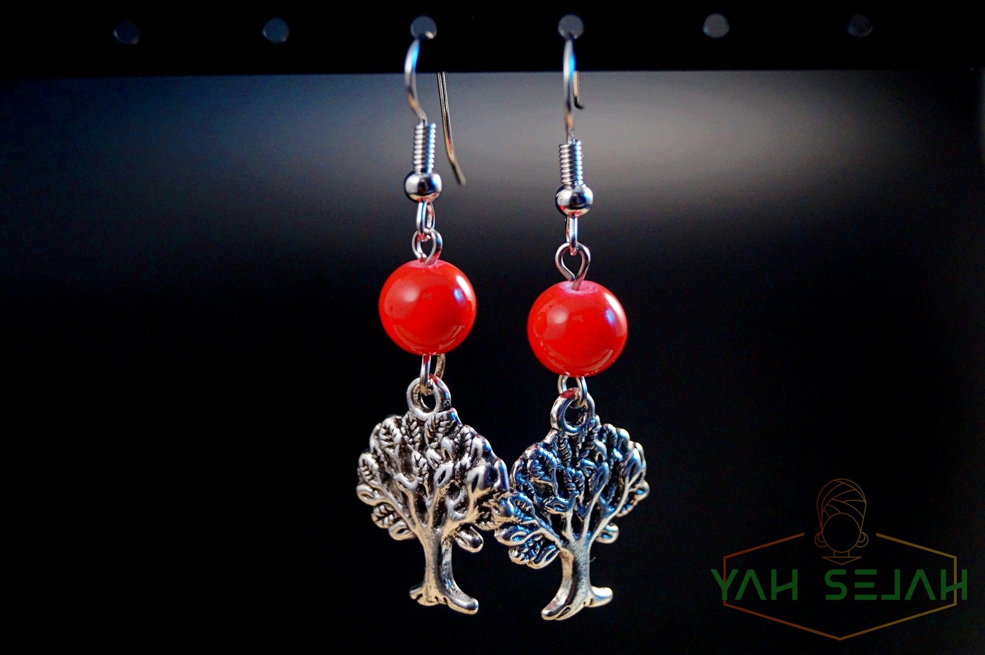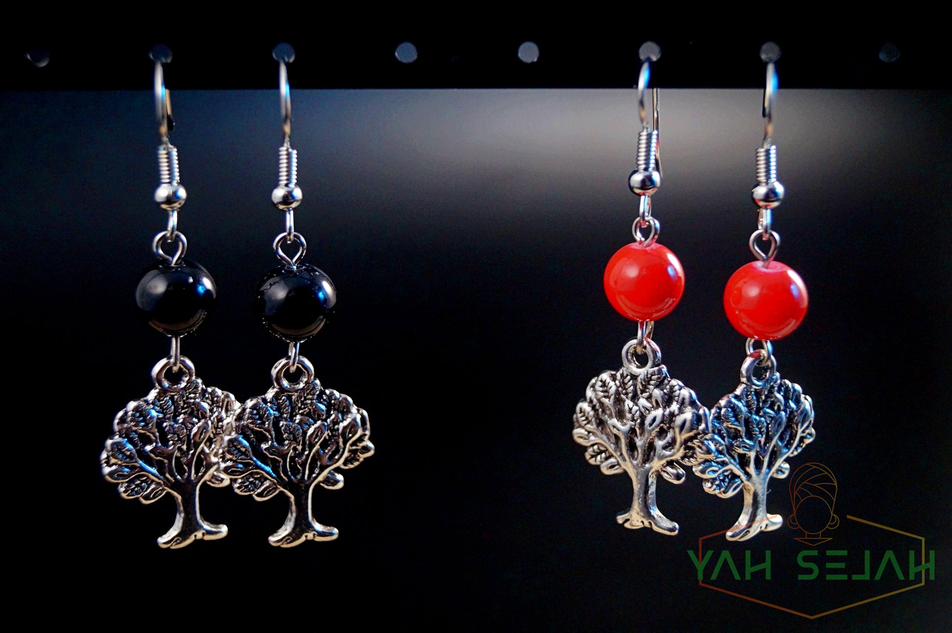 Der Ohrring ist mit einer Glasperle in Rot oder Schwarz Bestückt.