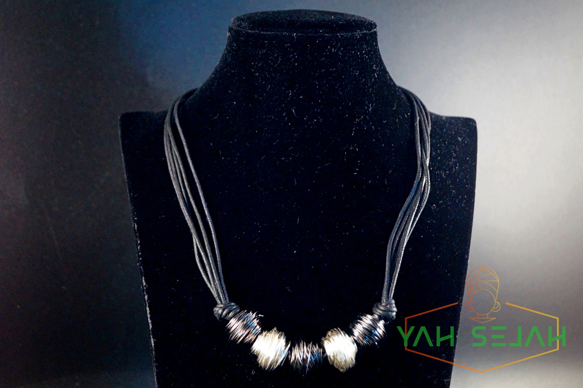 Die Kombi aus Gewachster Baumwolle und Glänzendem Eisendraht geben der Kette einen besonderen look.